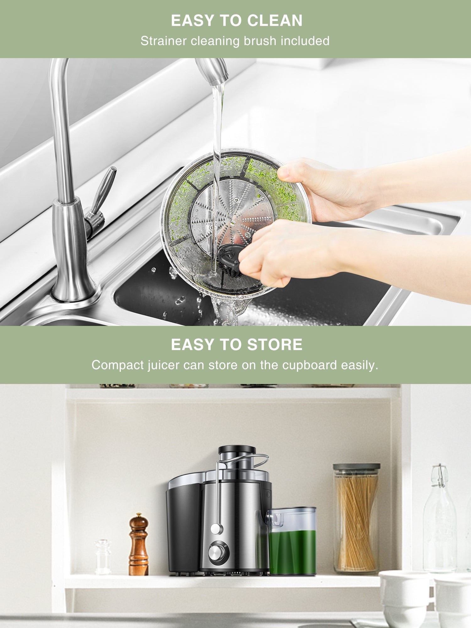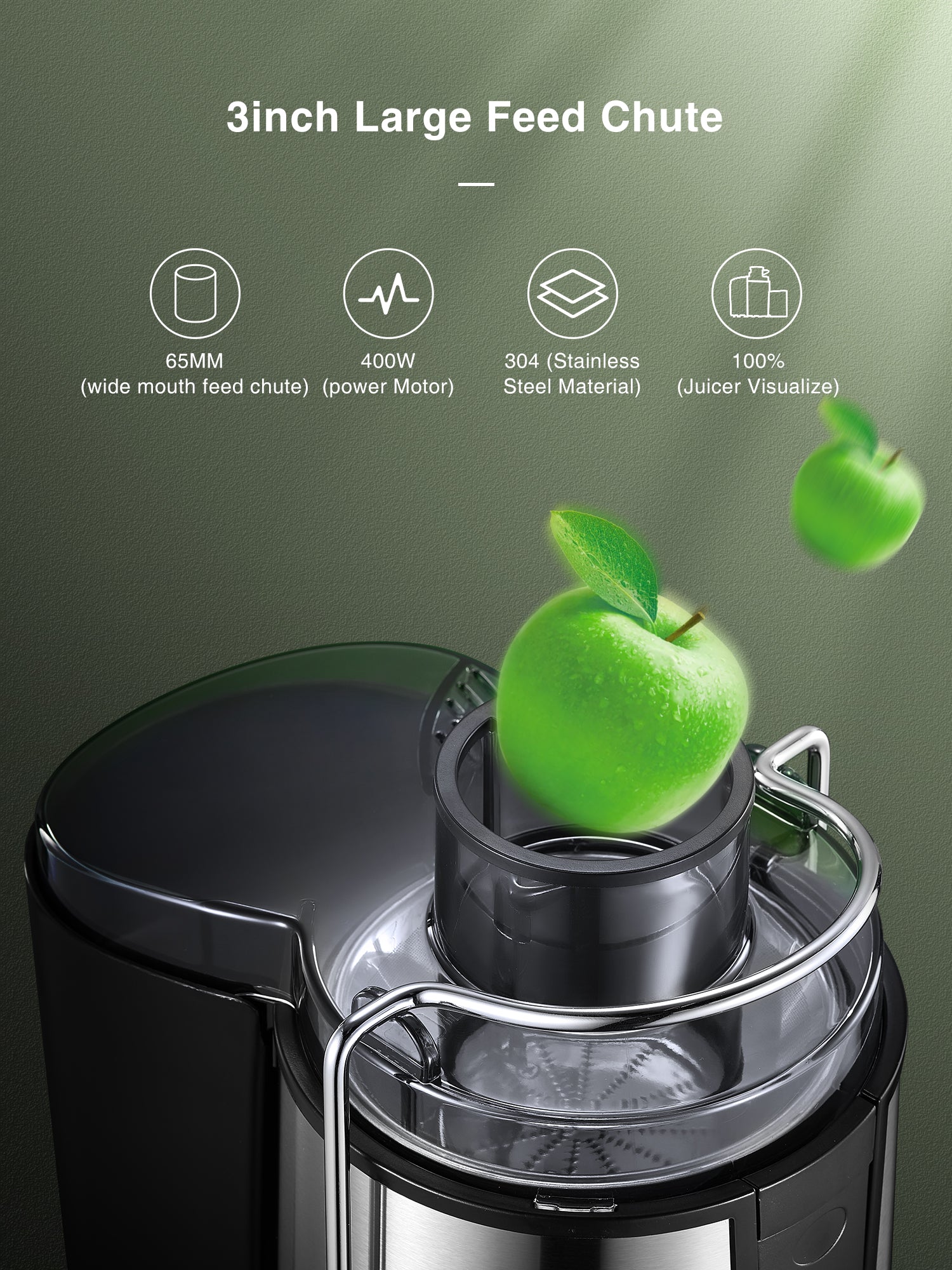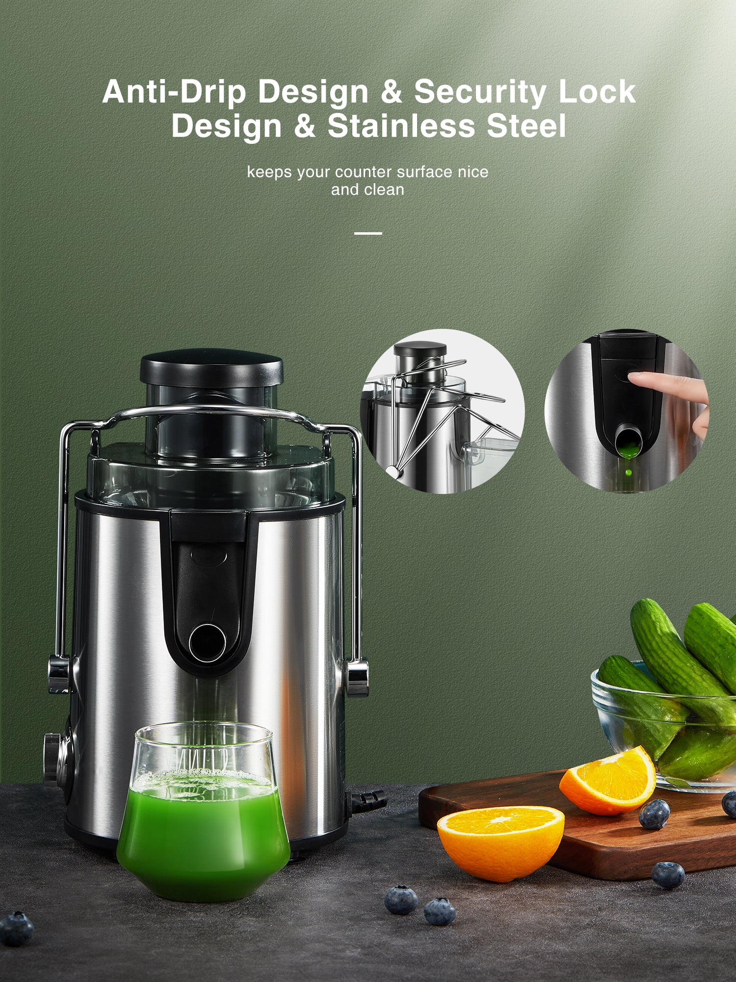 Upgraded Juicer Machine for Fruits and Vegetables Easy to Clean, Stainless Steel Juicer 400W with 3'' Wide Mouth, Juilist Compact Centrifugal Juicer Extractor Anti-Drip with Brush & Recipe