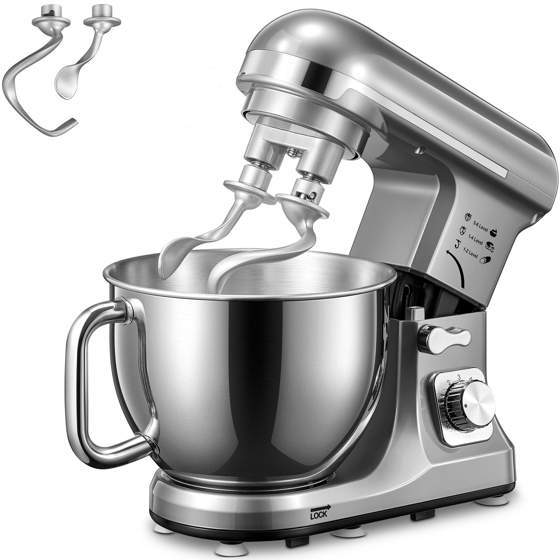 Fohere 5.5 Quart Tilt-Head Stand Mixer with Double Dough Hook Silver