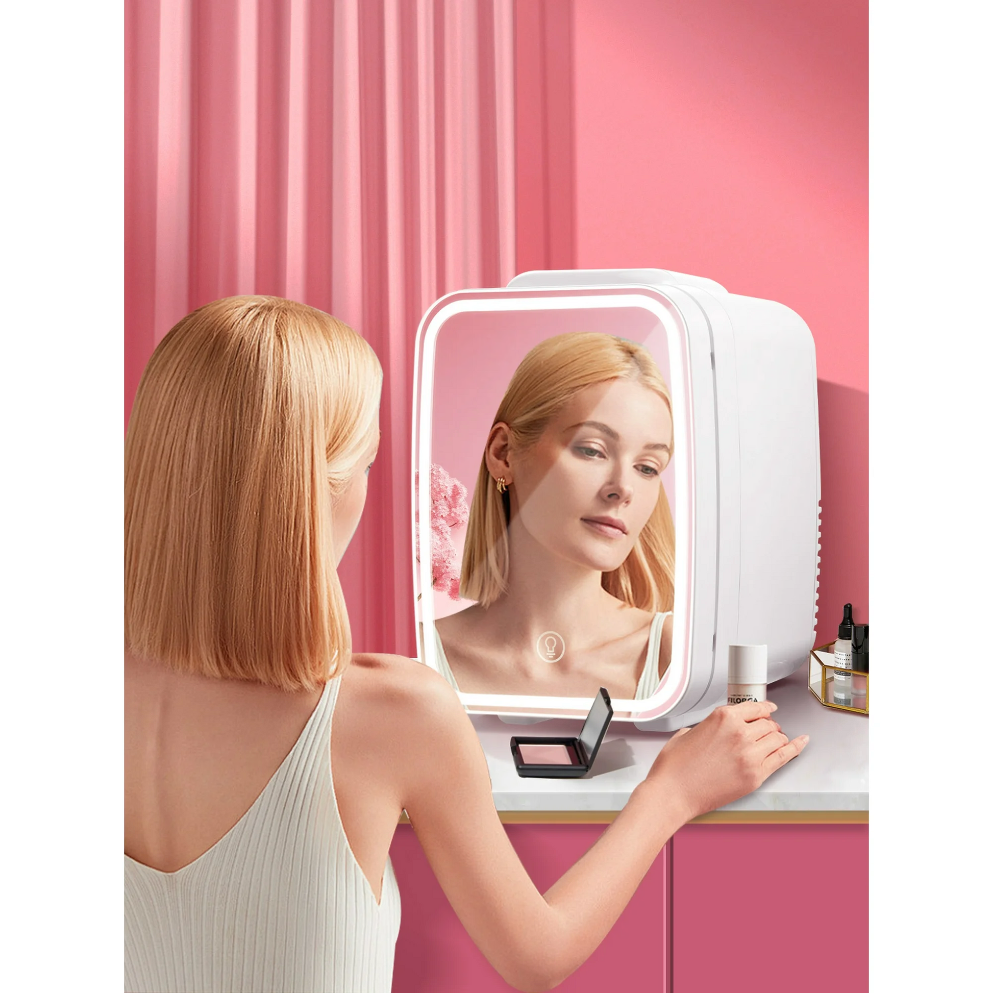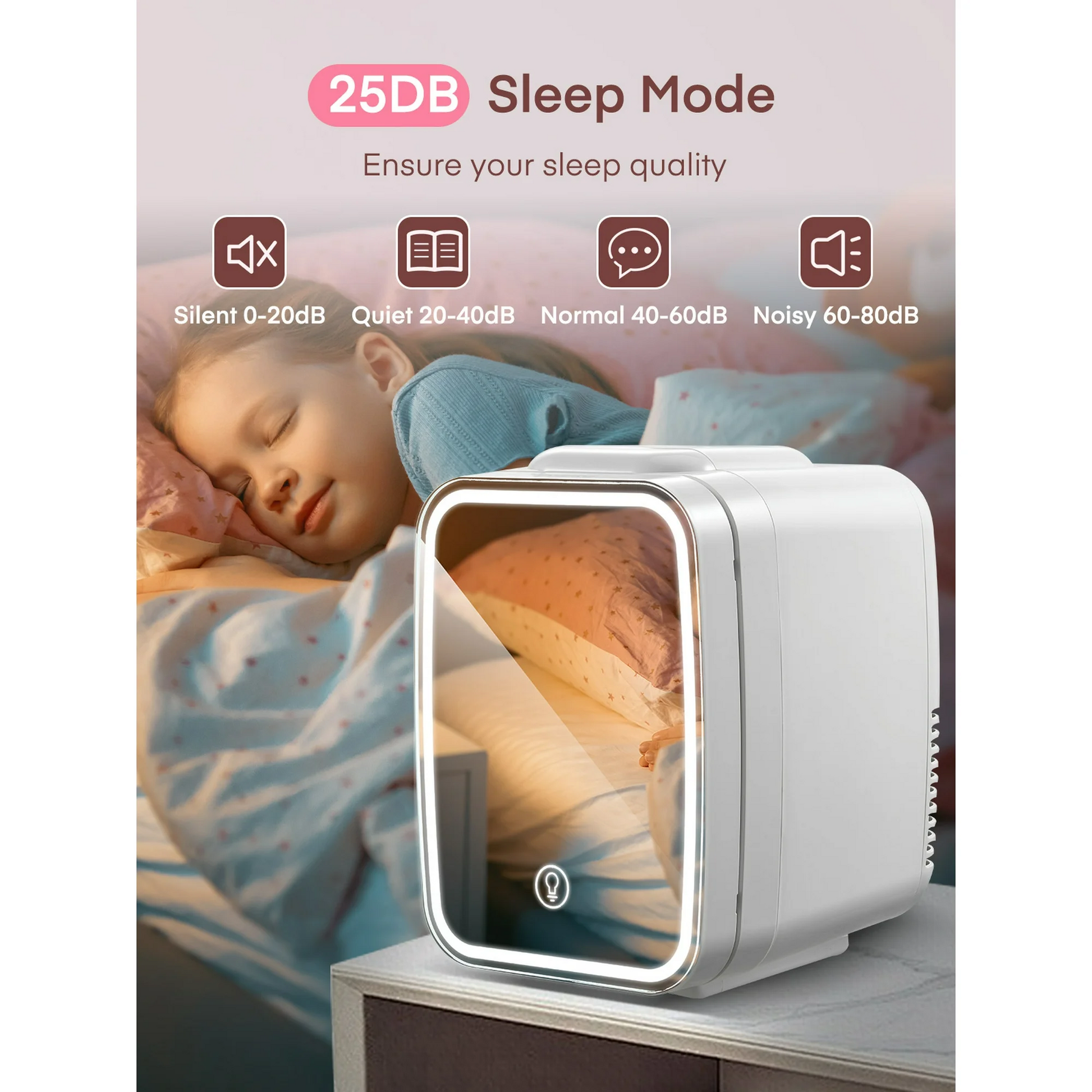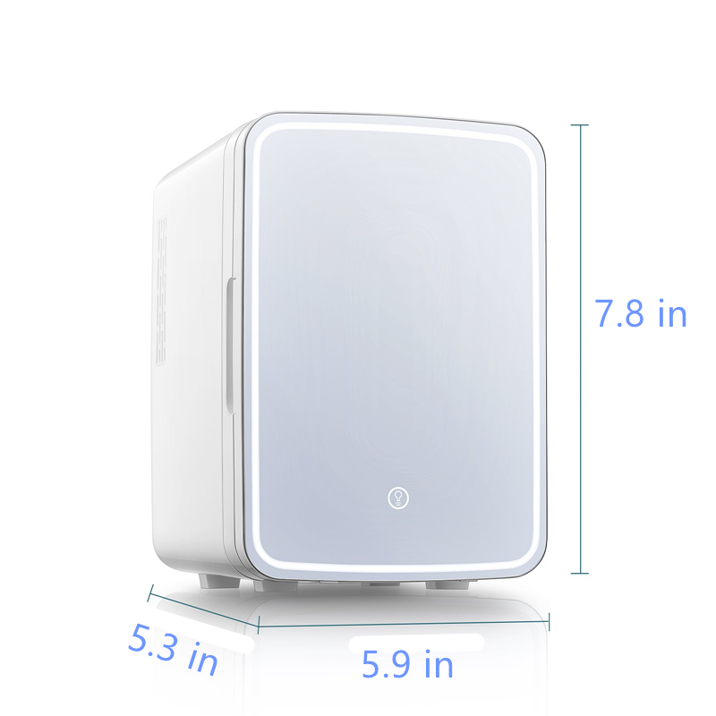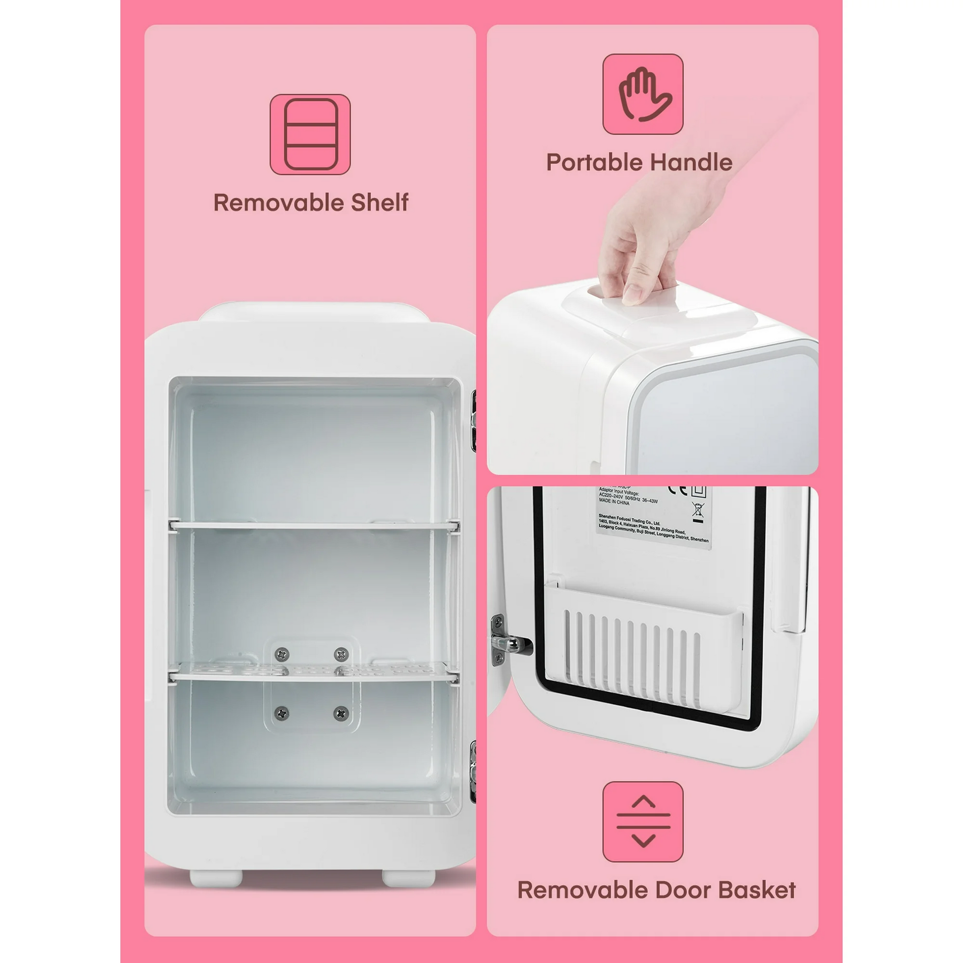 - 【Compact and Portable】: The mini refrigerator has a capacity of 5 liters and can hold six 12-ounce drinks. The interior size is 5.3*5.9*7.8 inches. Comes with a removable shelf and convenient carry handle, great for bedroom, offices, dorms and more!