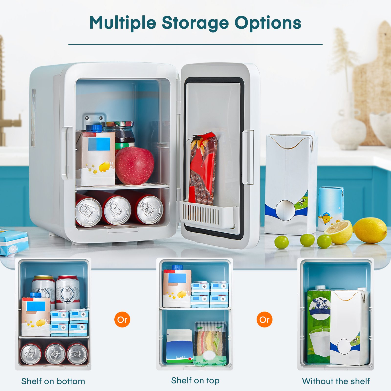 - 【Simple to Use and Versatile】: Set the mini fridge to cool or warm just flip a switch! Cool up to 34°F (18-20°C below ambient temperature) and keep warm up to 131°F (55°C)