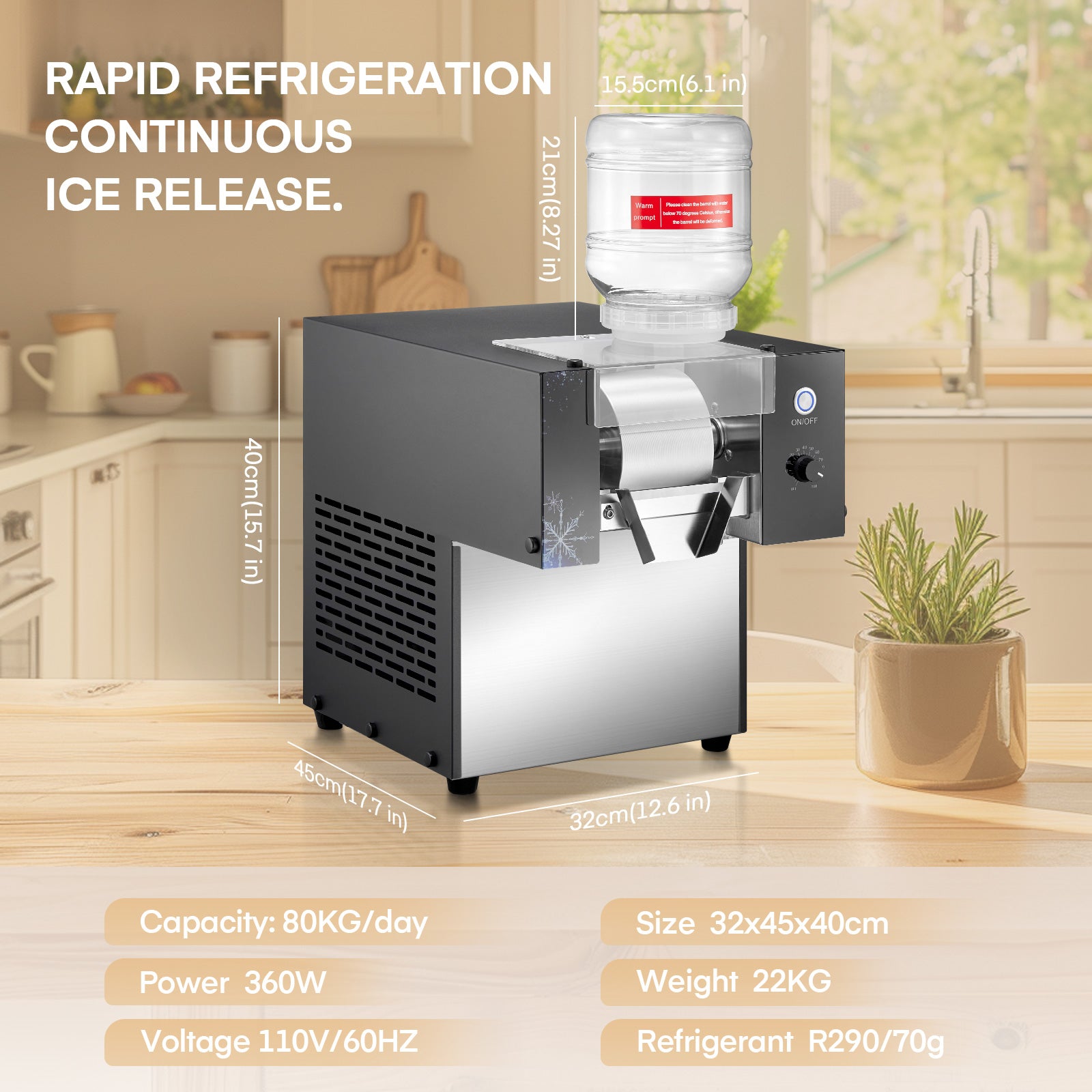 FOHERE Commercial Countertop Snowflake Ice Maker, 176LBS/24H Output, Stainless Steel Construction, Silver