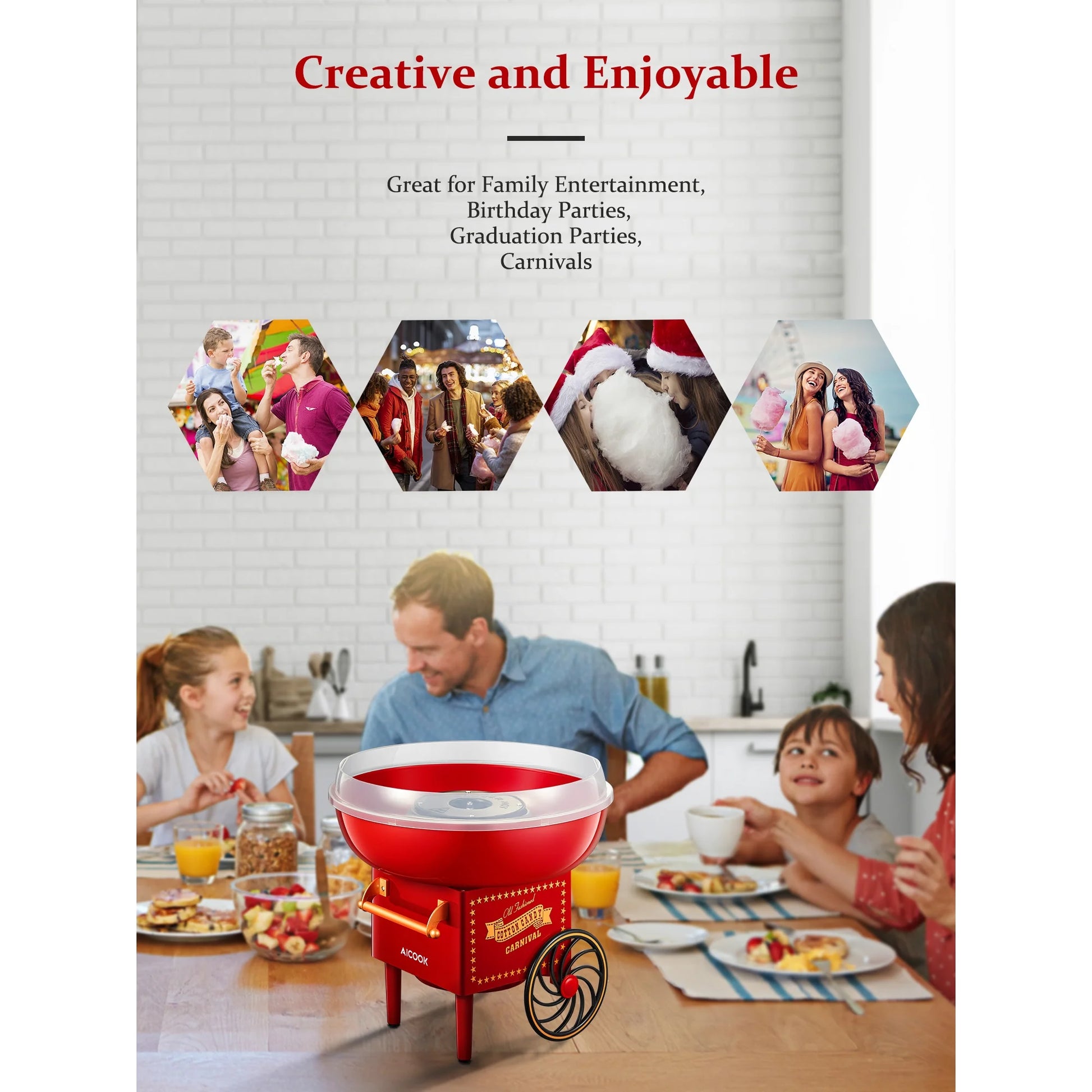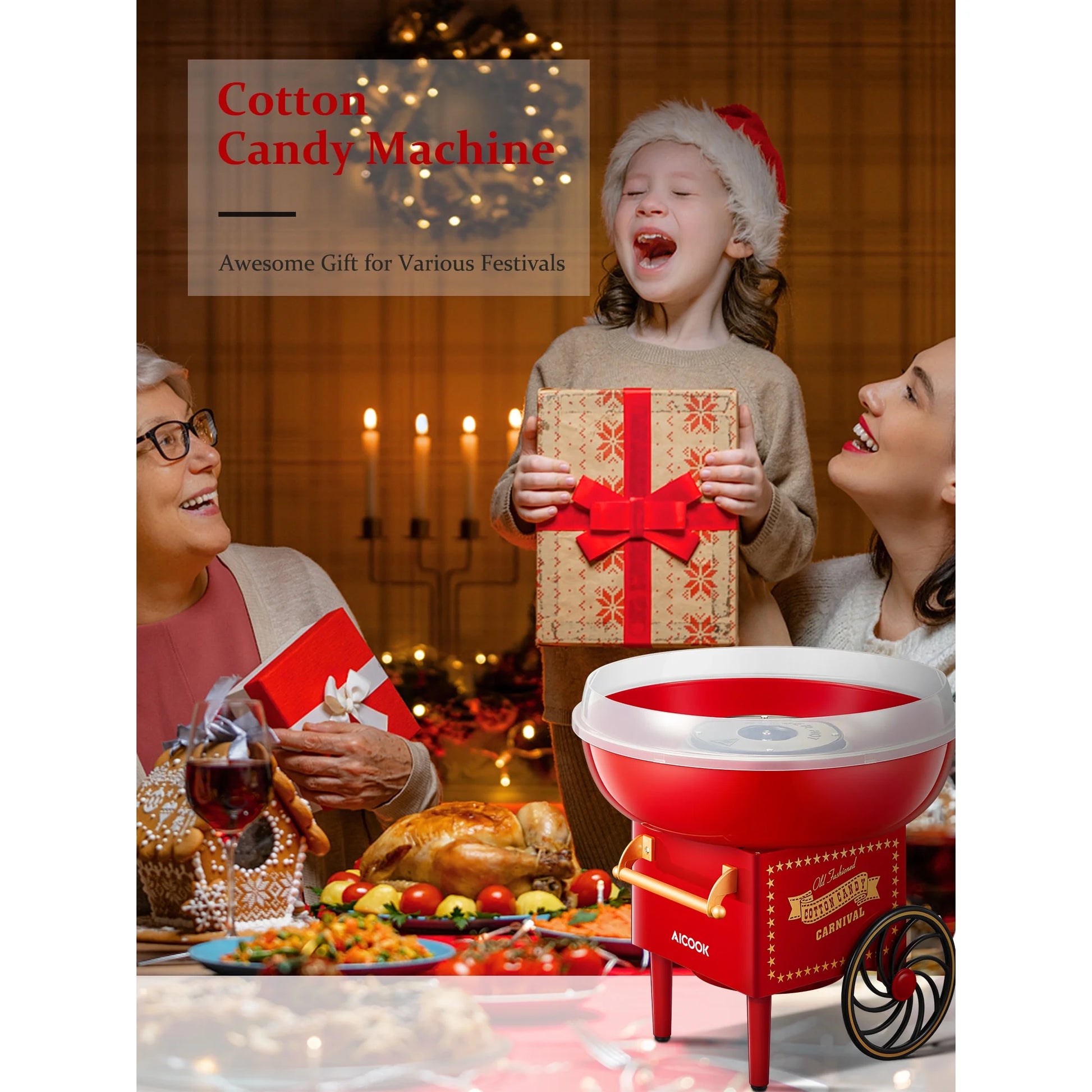 Cotton Candy Machine for Kids, Hard Candy Floss Machine with Red Retro Design, 500W