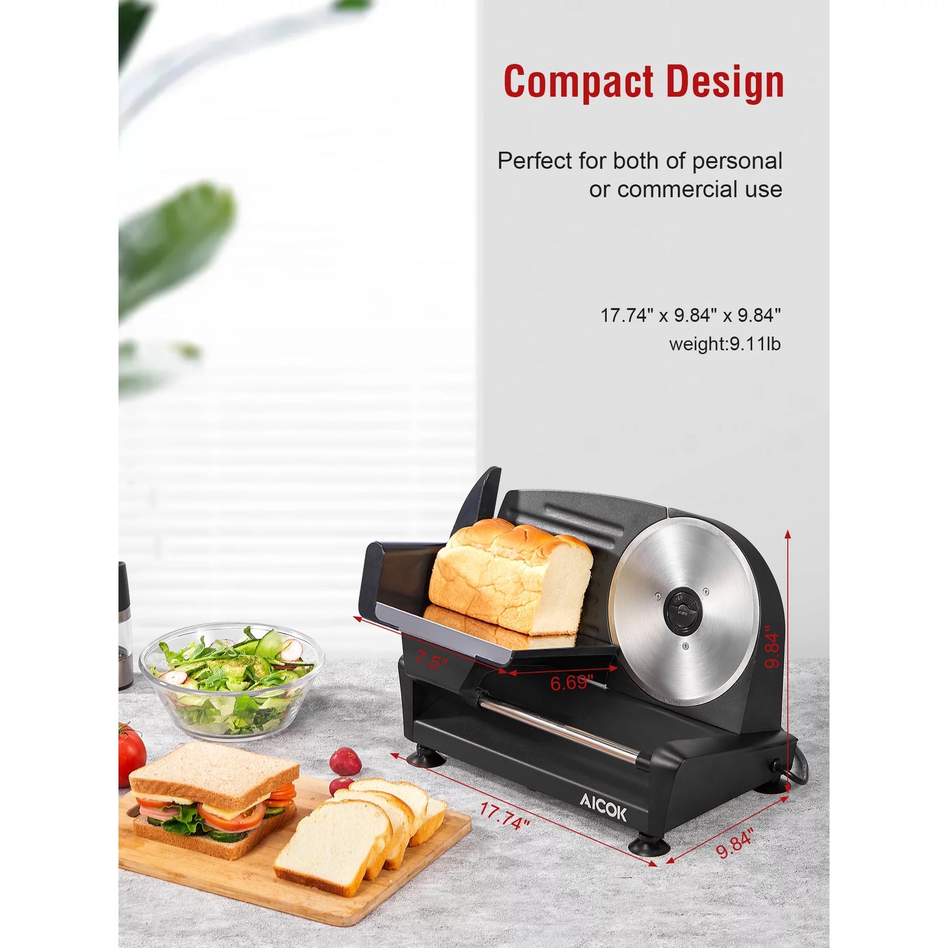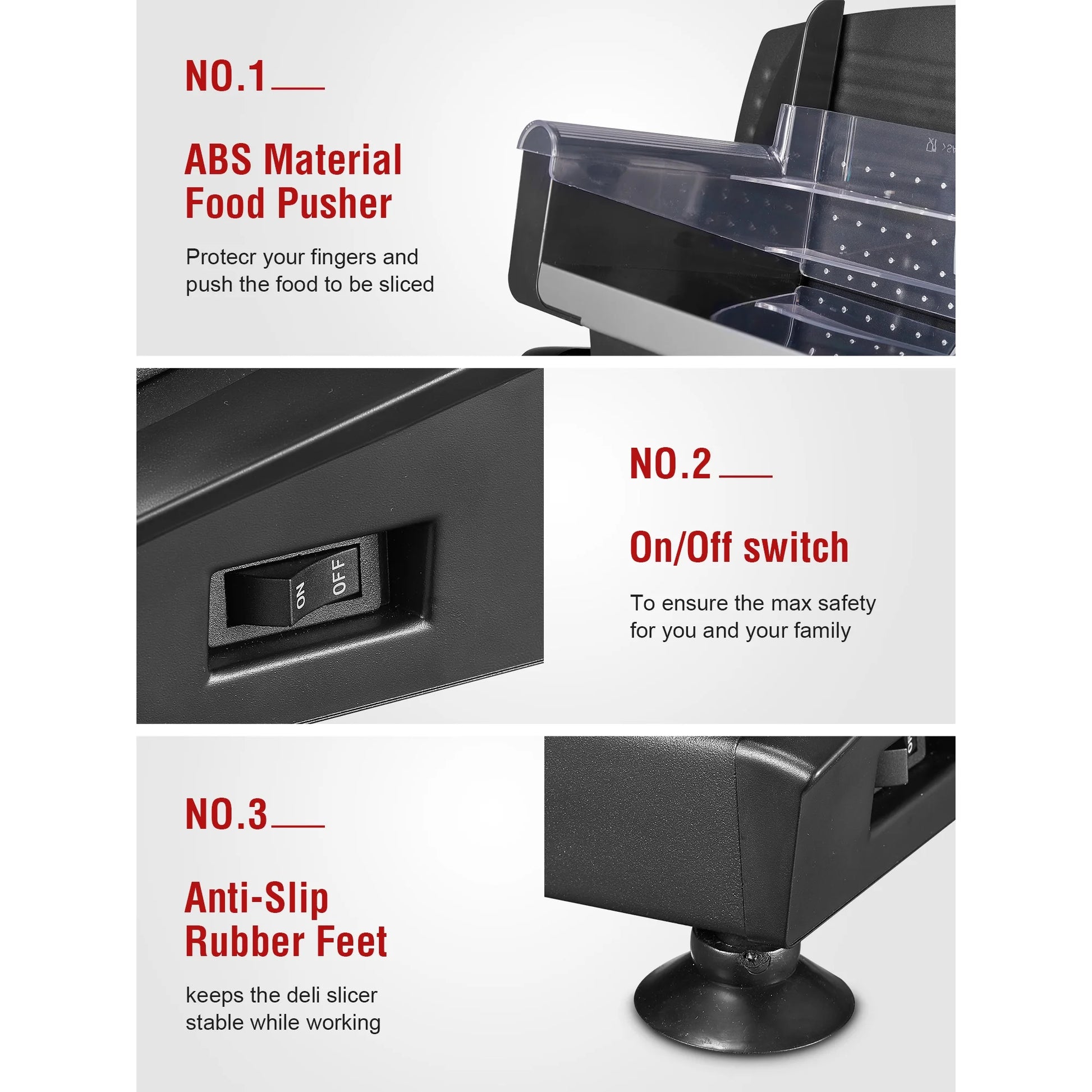 - 200W Meat Slicer♦ Ideal for slicing many ingredients such as meat, cold cuts, ham, cheese, bread, sausage, etc. Easy to operate, you can use it at home with confidence.