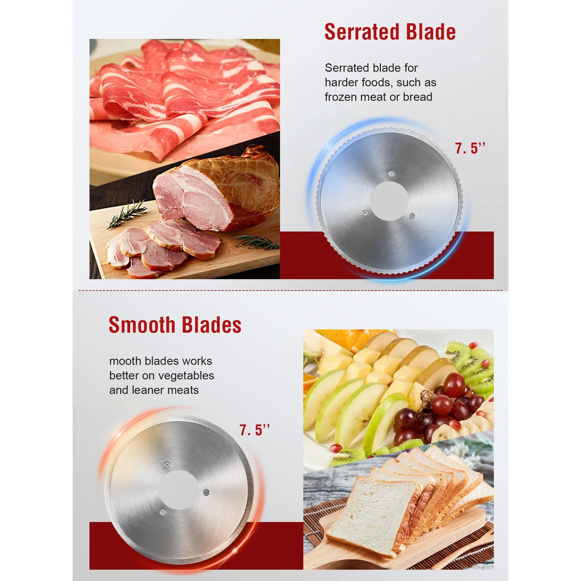 Meat Slicer, 200W Deli & Food Slicer with Two Removable 7.5’’ Stainless Steel Blade with Adjustable Thickness Knob (0-15mm) for Meat, Cheese, Bread