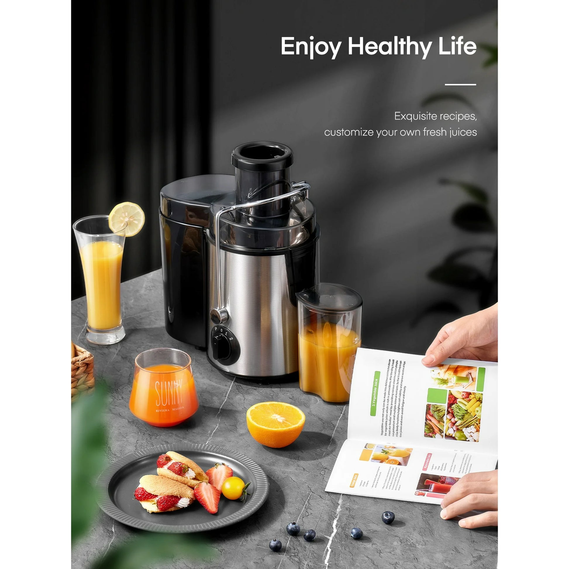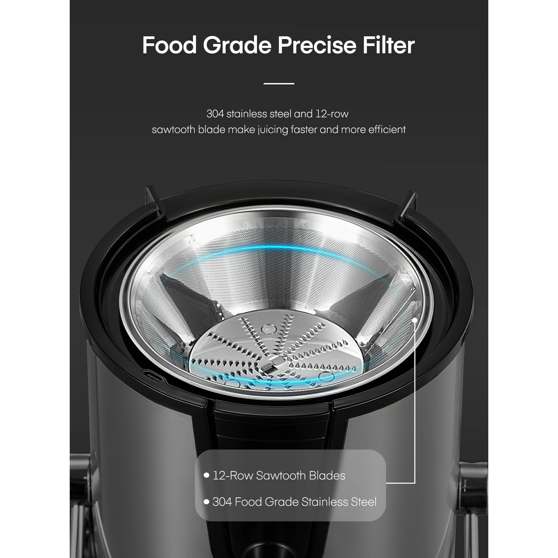 【Make Fresh and Pure Juice】The juicer can easily juice celery, carrots, apples, oranges and other fruits and vegetables. The food-grade precision stainless steel knife net can fully extract every drop of juice and produce a cup of fresh and pure juice.