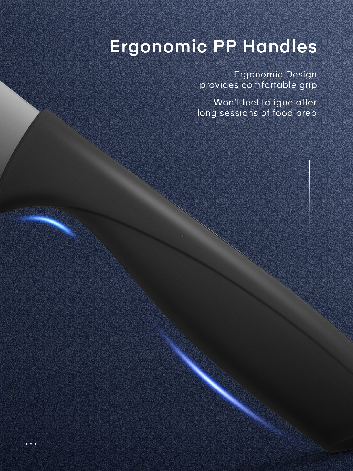 - Ergonomic Handle Knives: Ergonomic Non Slip PP handle is very comfortable to hold. Soft, comfortable handles ensure a safe grip, knife won't slip when your hand gets wet.