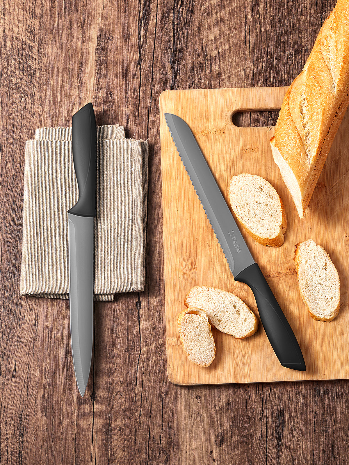 - No Rust Kitchen Knife Set: Black Non Stick coated stainless steel blade are crafted from superior high carbon stainless steel for against corrosion and rust. Each knife is sharp and durable and provides precise cutting results