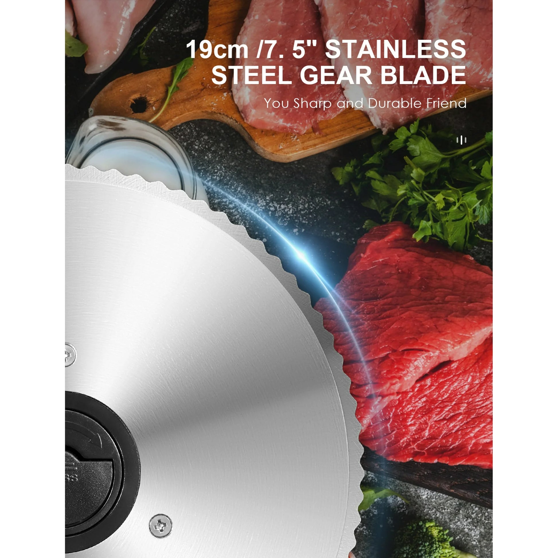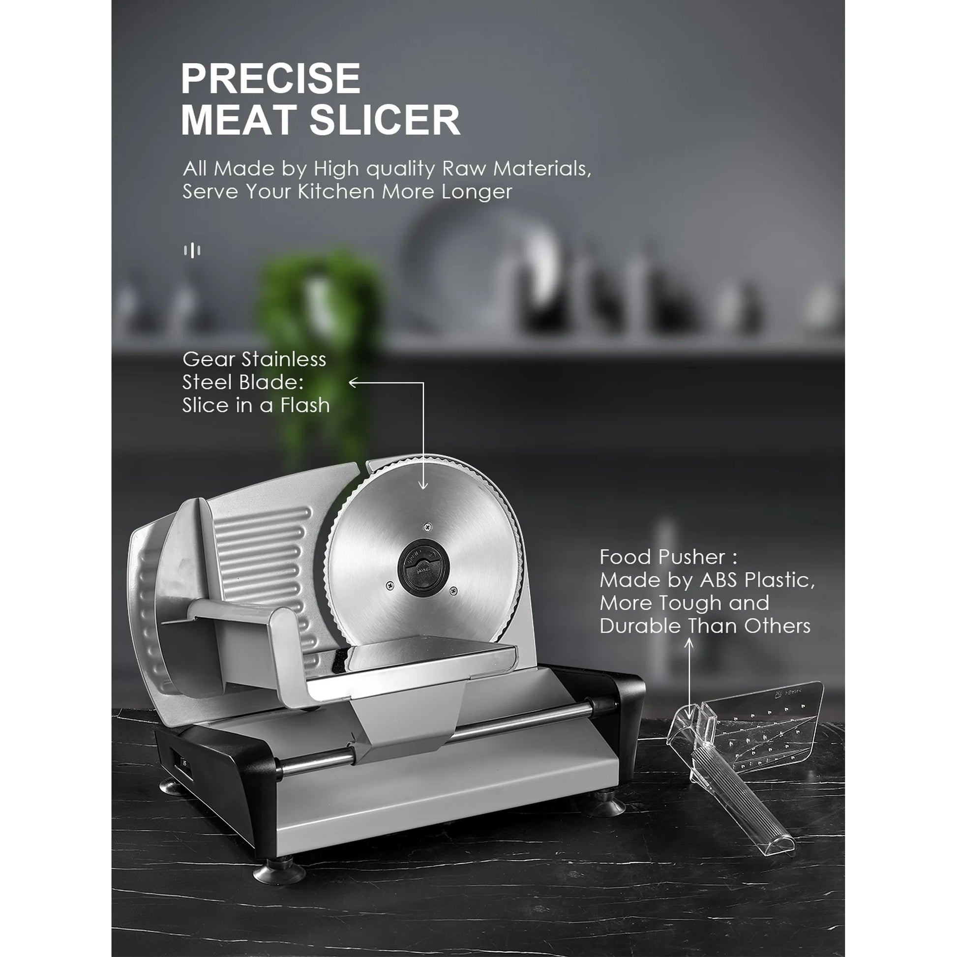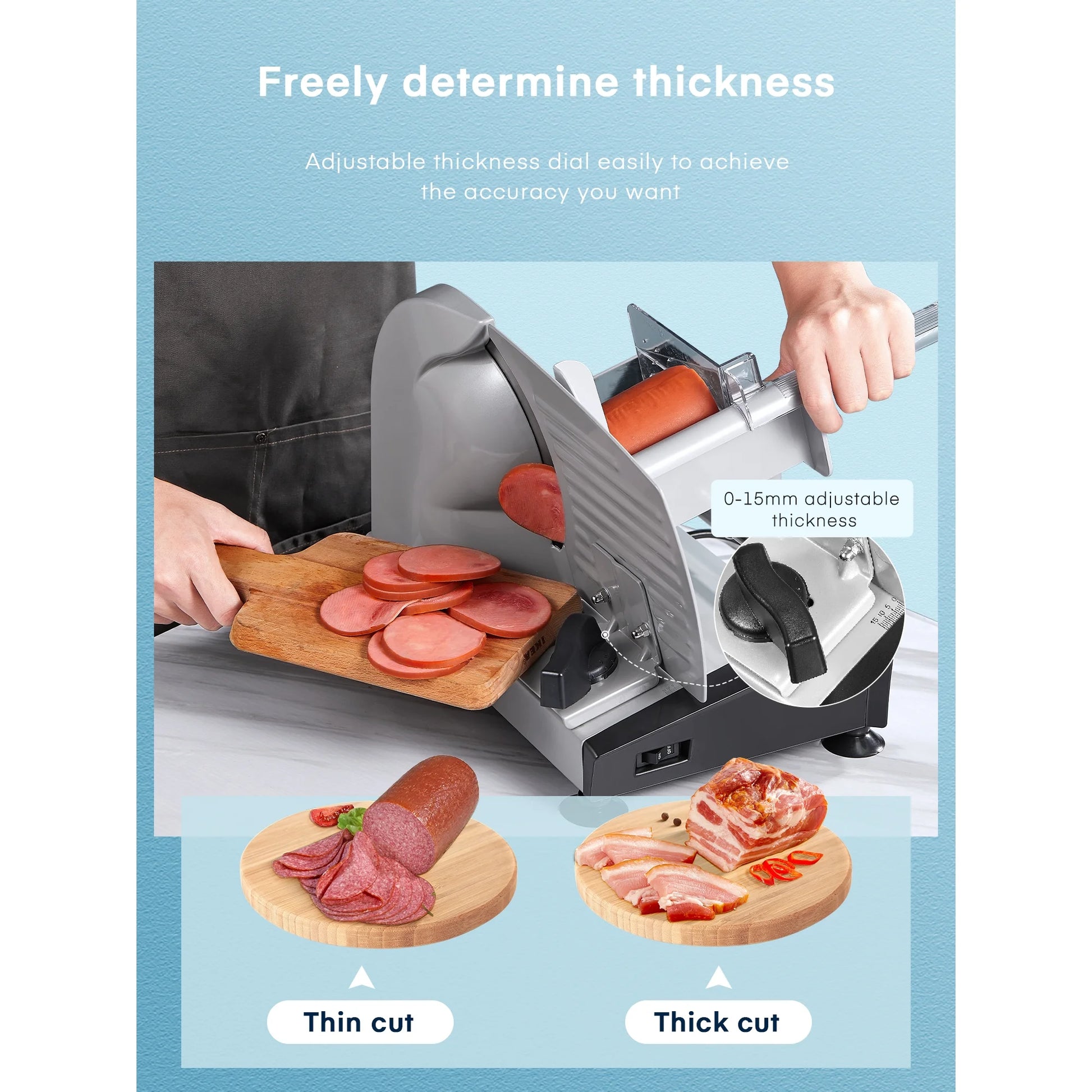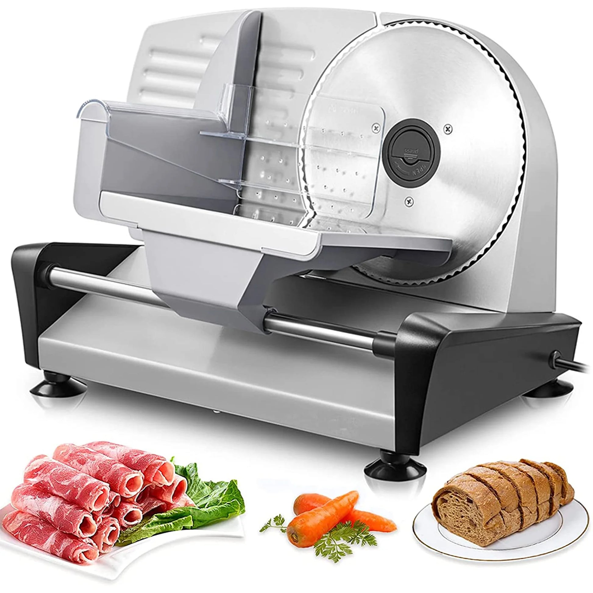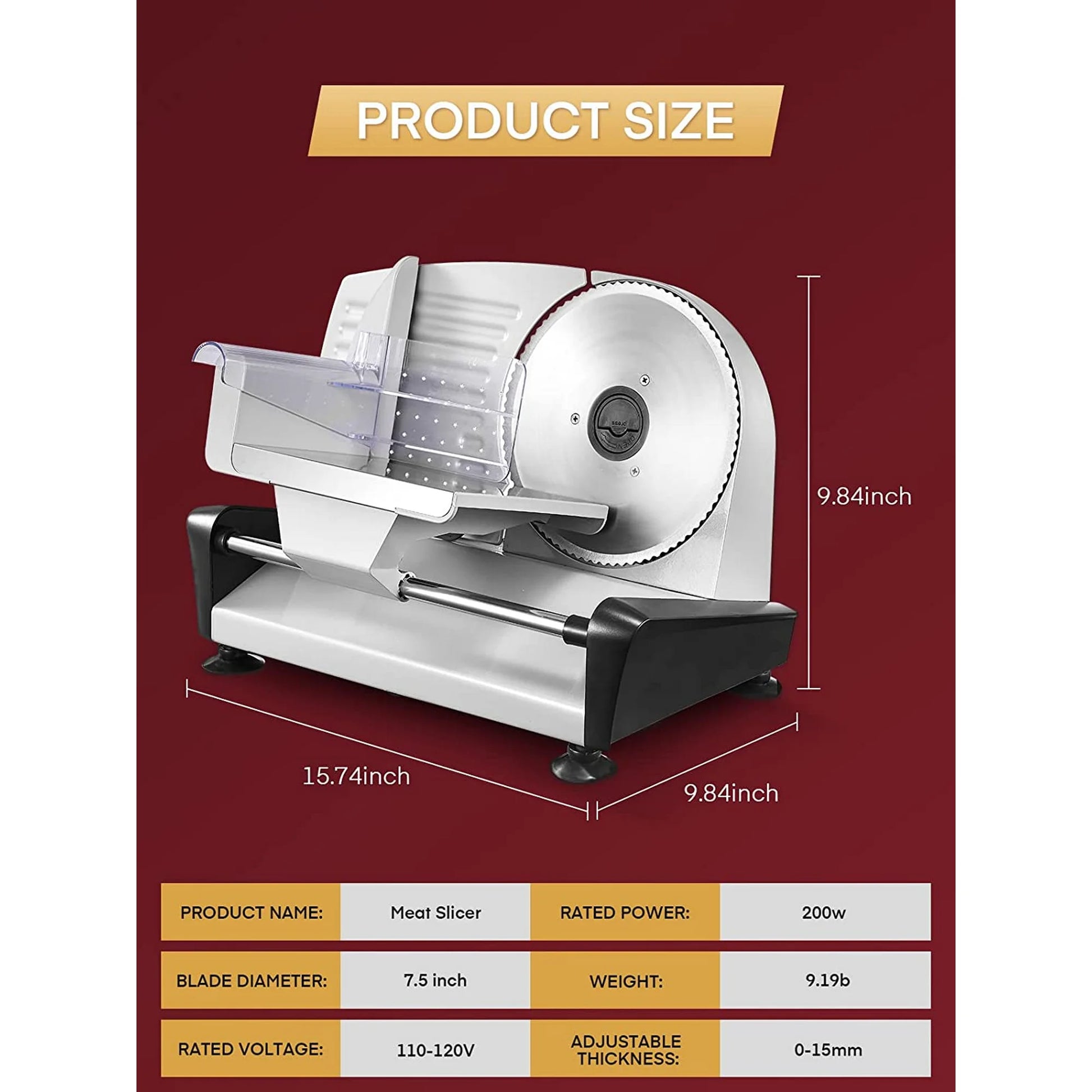 - 【200W POWERFUL MEAT SLICER】The electric slicer is driven by 200 watts of fast, high yield slicing power. This is a highly versatile model, with enough power and speed to slice pretty much anything. Not just meats, but cheeses, bread, and vegetables.