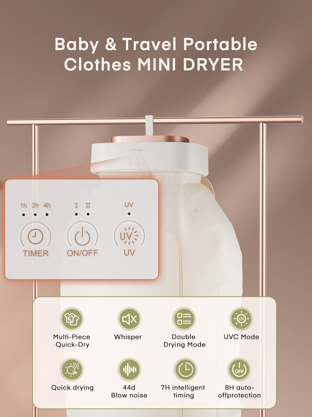 đăQuick Dryingă: This mini dryer has a high power of 600W and dries quickly in 20 minutes, ensuring your clothes are ready to wear in no time. Say goodbye to damp clothes and hello to convenience.